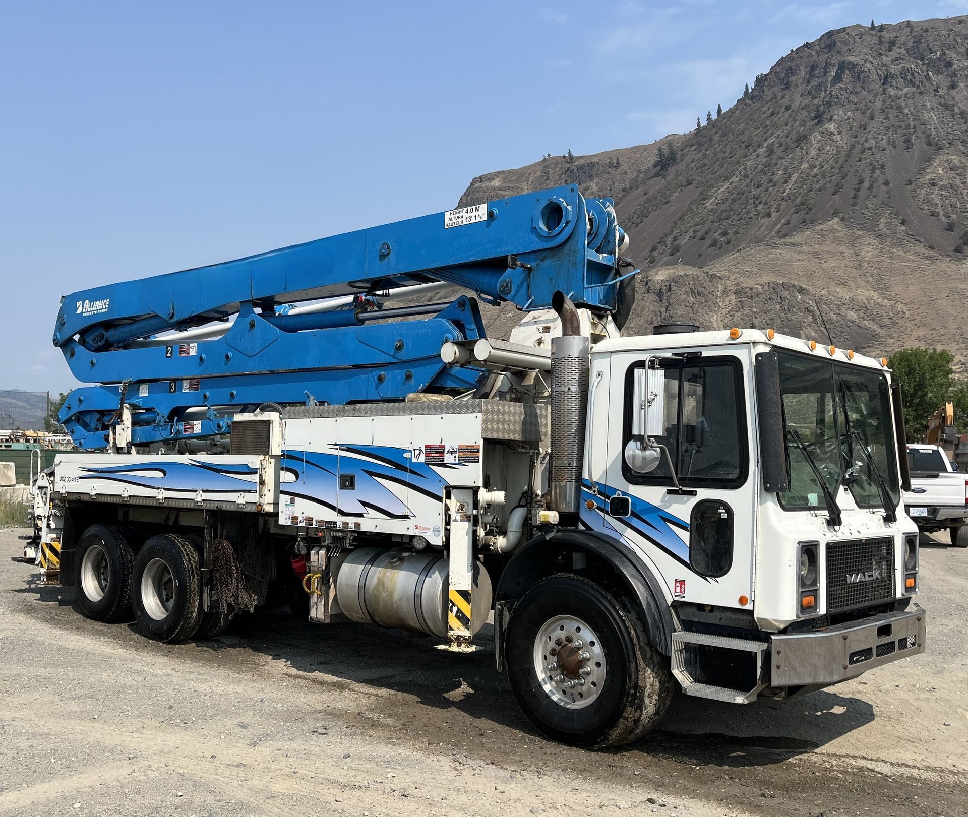 View Specifications on the 2017 Alliance 33m Concrete Boom Pump – Mounted on 2007 Mack MR690SS and Contact Us